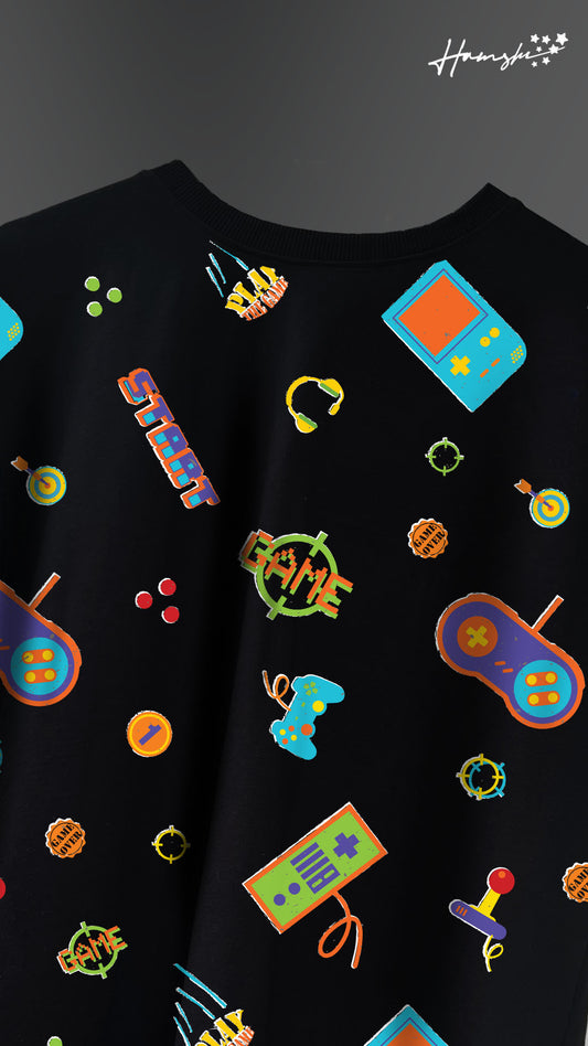 Retro Gaming All Over Print T-shirt - Black