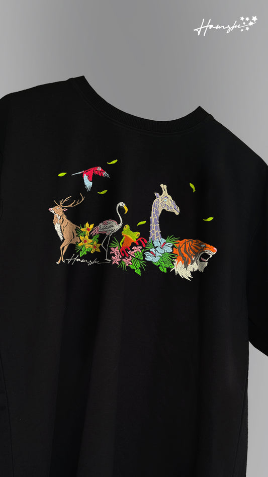 Wild Life Embroidery T-shirt - Black