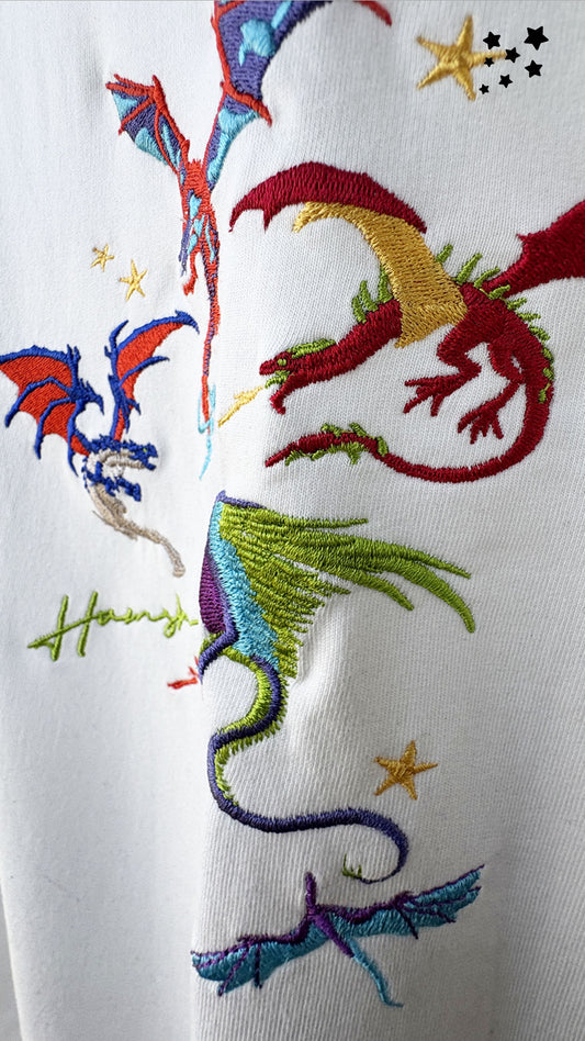 Dragons Fire Embroidery T-shirt - White