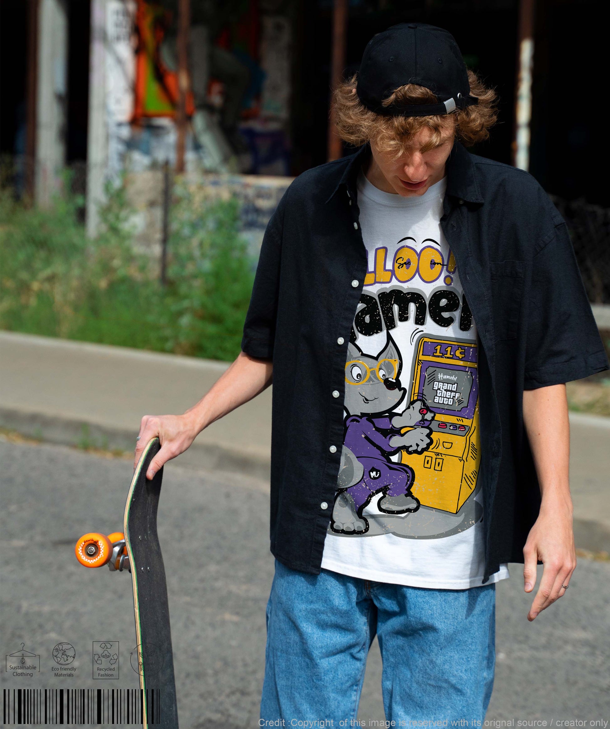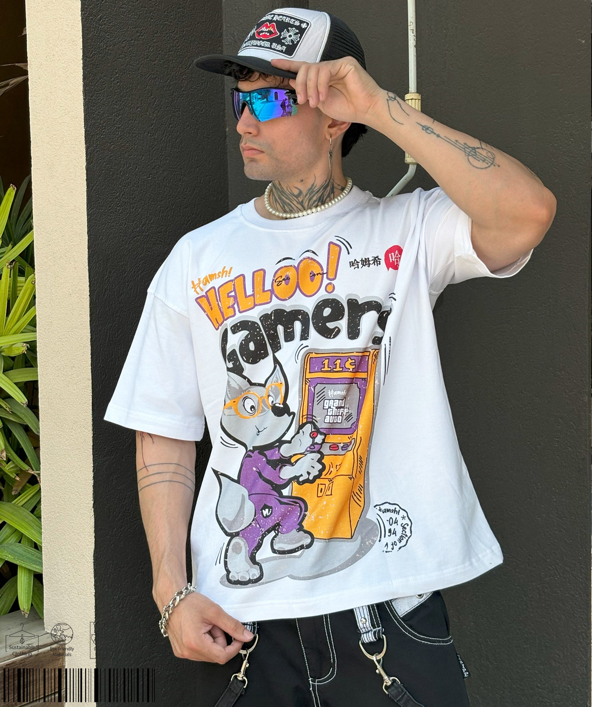 Gamer Fox Print T-shirt - White
