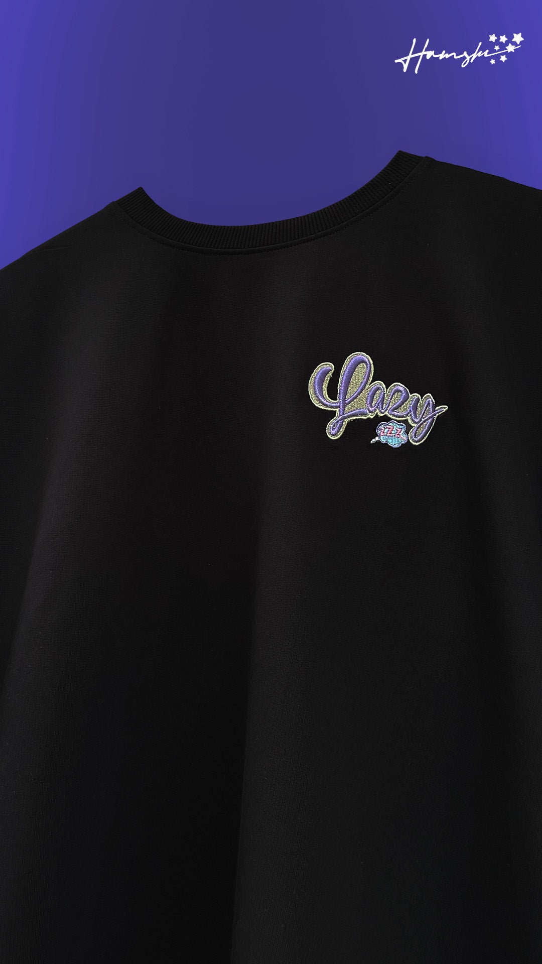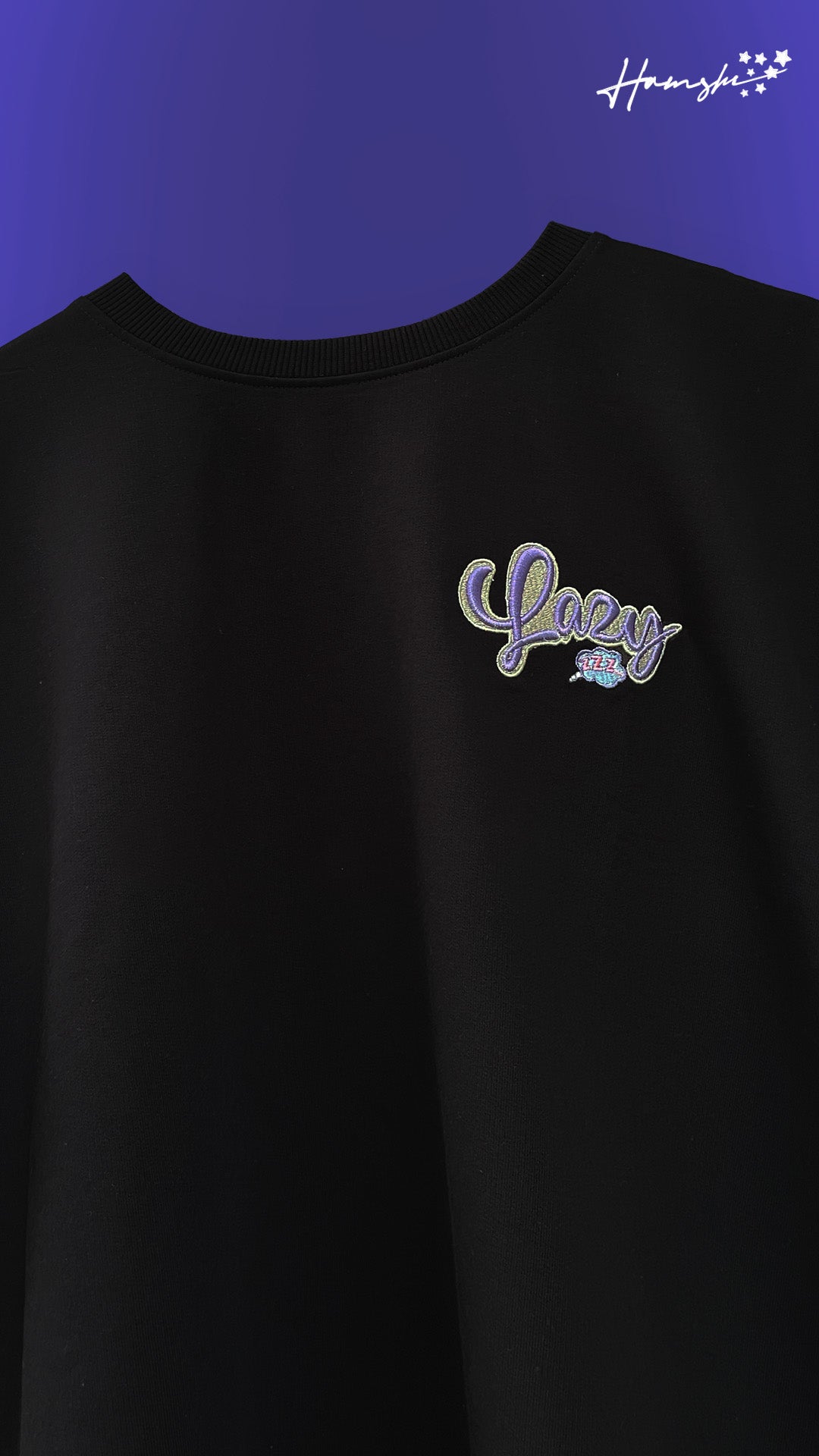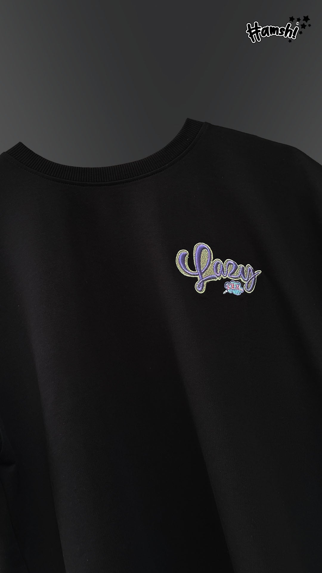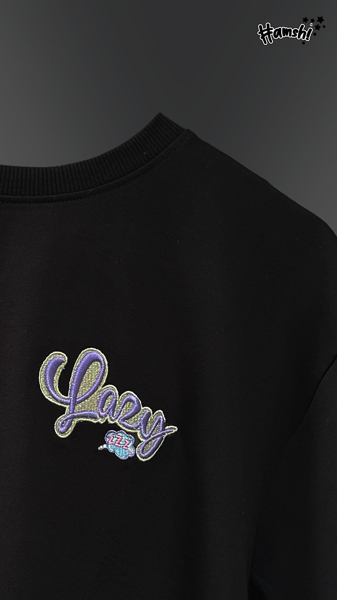 Lazy -3D Embroidery T-shirt - Black